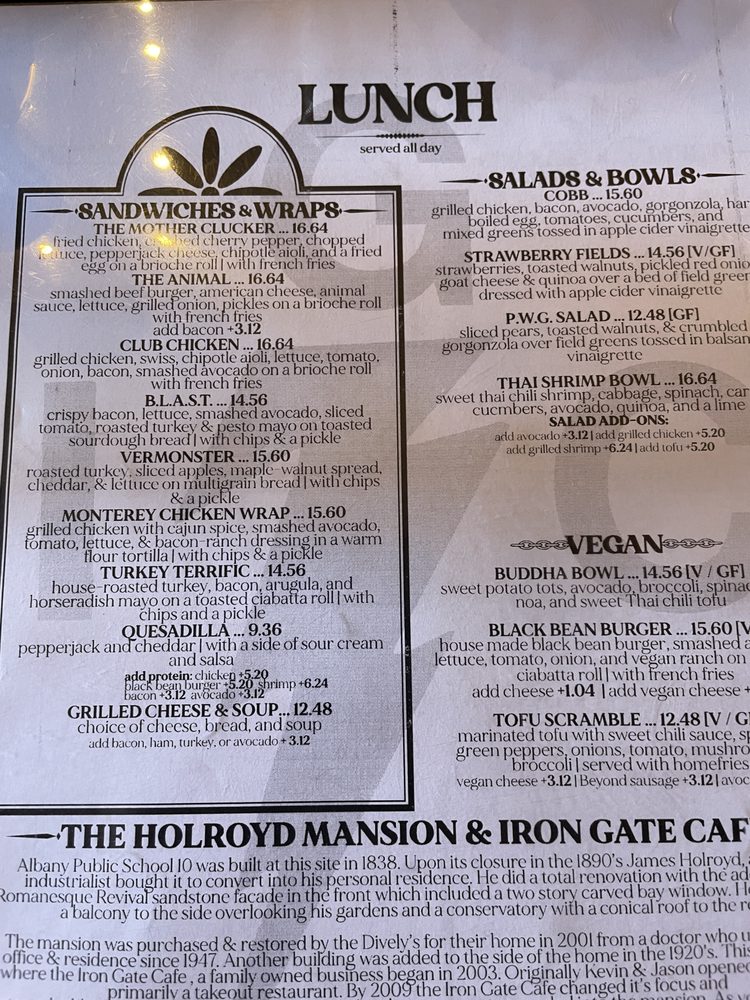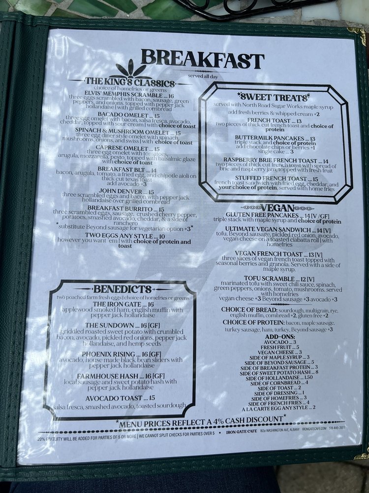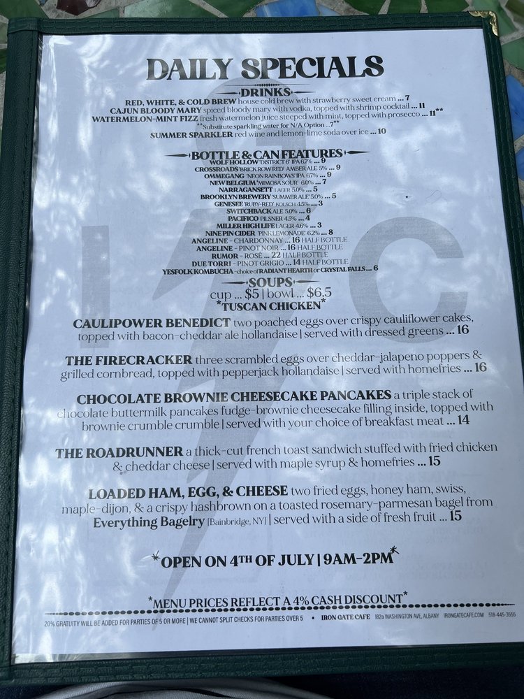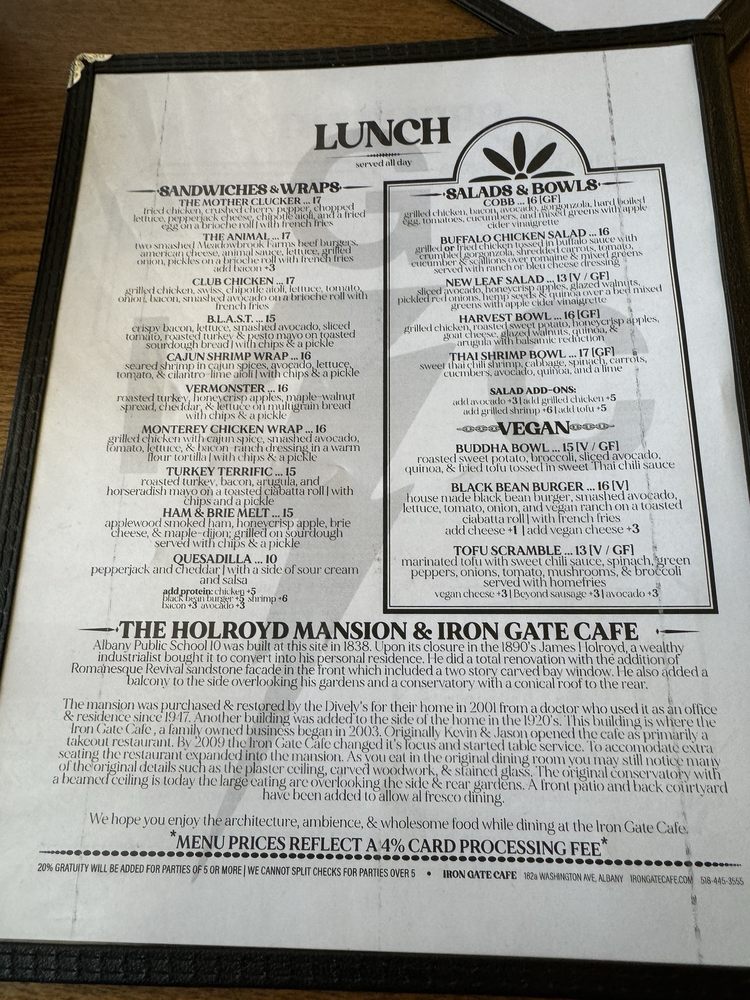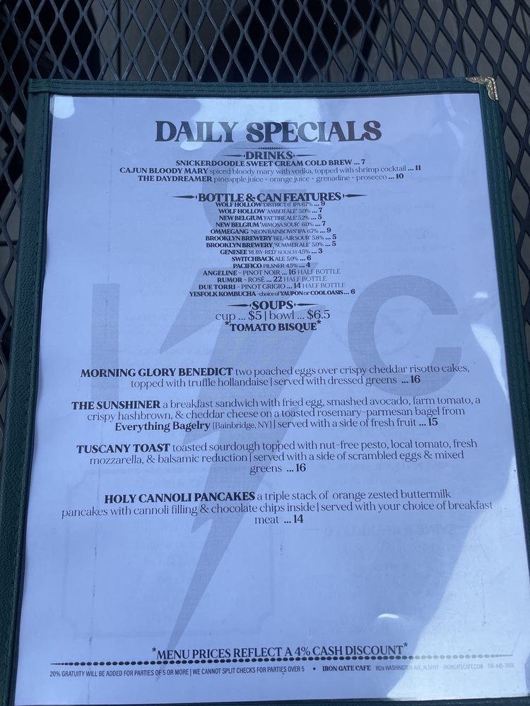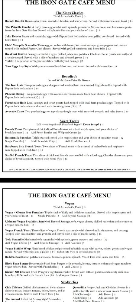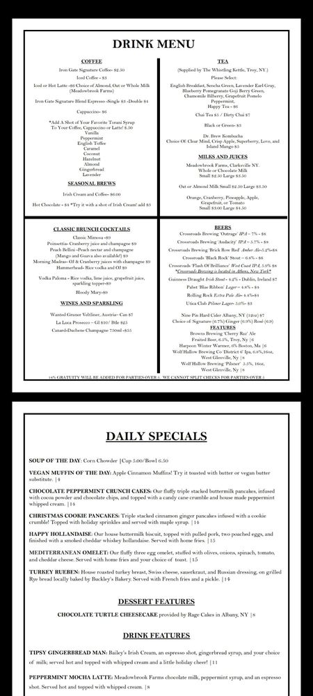 Attention food lovers! Introducing Iron Gate Cafe, a hidden gem located in Albany, NY. This charming cafe offers a diverse menu with options for everyone, including vegan and vegetarian choices. The cafe boasts a cozy atmosphere, outdoor seating, and gender-neutral restrooms. Customers rave about the everchanging specials menu, offering unique drinks, soups, and mains. From the Iron Gate Signature Coffee to the Lavender Earl Gray Tea, every sip is a delight. Don't miss out on their delicious breakfast and brunch options, such as French toast, omelettes, and Benedicts. With attentive service and a welcoming vibe, Iron Gate Cafe is a must-visit for a memorable dining experience. So, gather your friends or family and indulge in a culinary journey at Iron Gate Cafe.